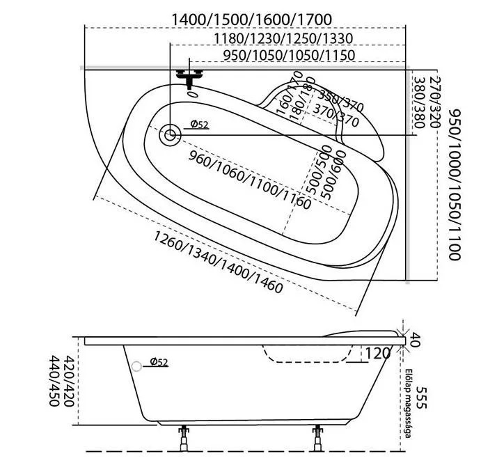 - Az ár a kádtestet tartalmazza, amely beépíthető, burkolható.